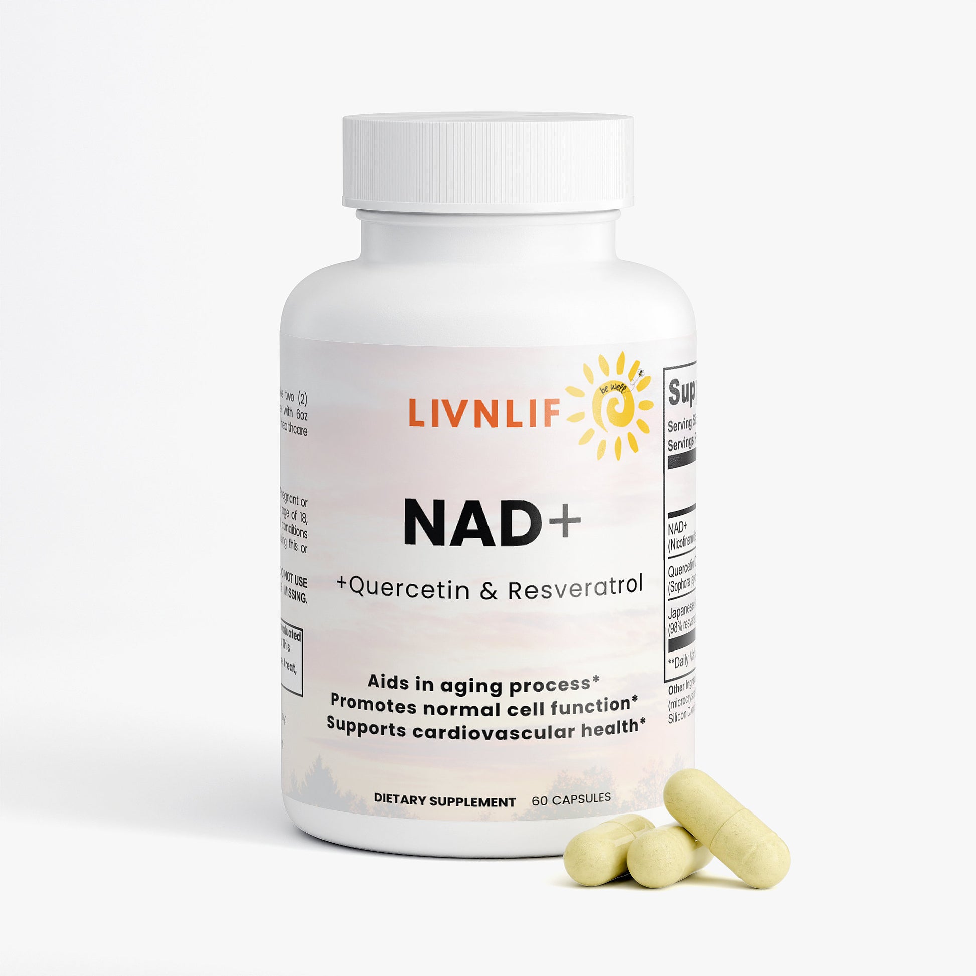 Quercetin, a natural flavonoid, helps promote a normal inflammatory response and supports optimal immune function. Resveratrol, sourced from Japanese Knotweed, is known for its role in supporting cardiovascular health and helping maintain cognitive wellness. Together, these ingredients complement NAD+ to help sustain energy and promote cellular resilience.