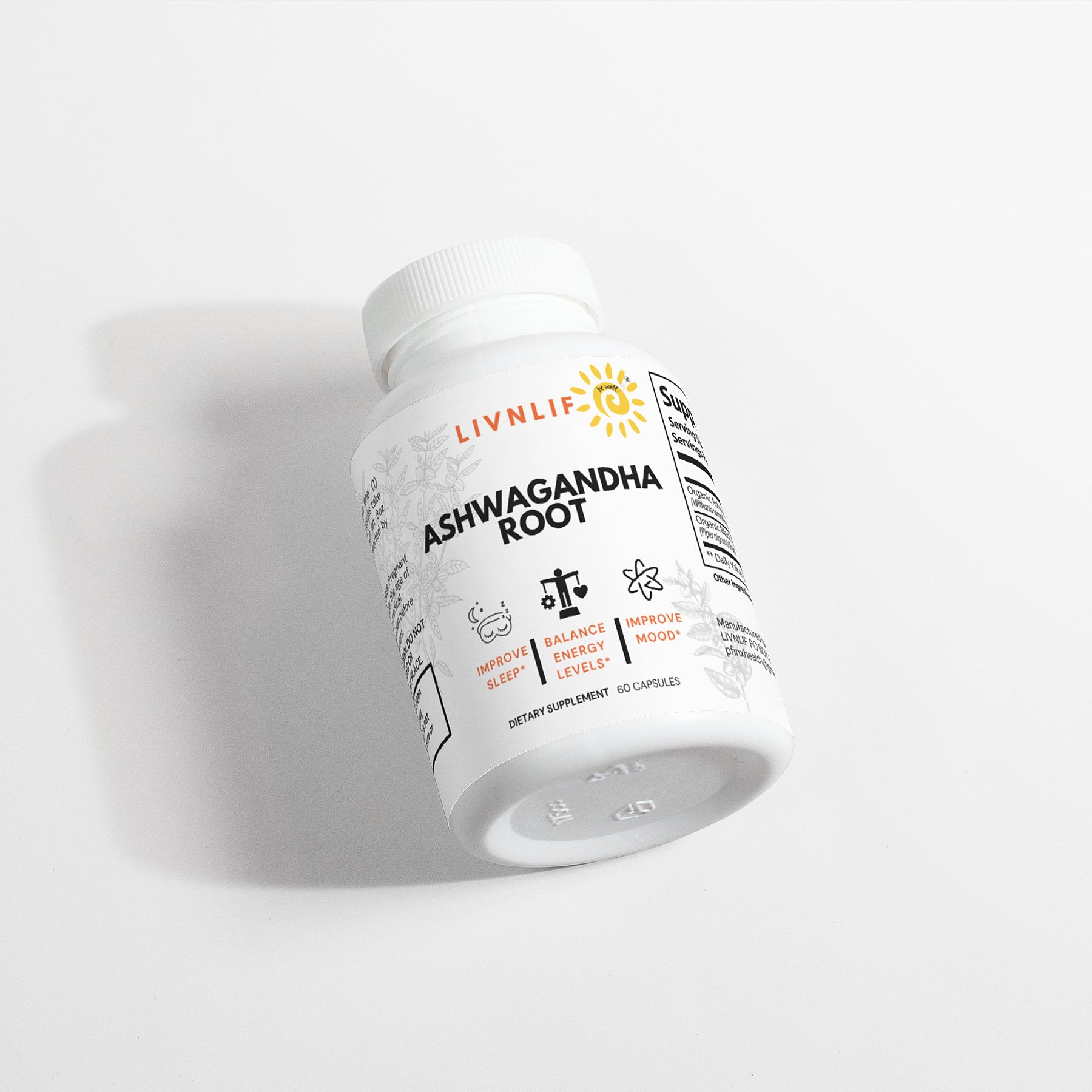 Ingredients: Organic Ashwagandha (Withania somnifera)(root), Organic Black Pepper (Piper nigrum)(fruit), pullulan capsules.
